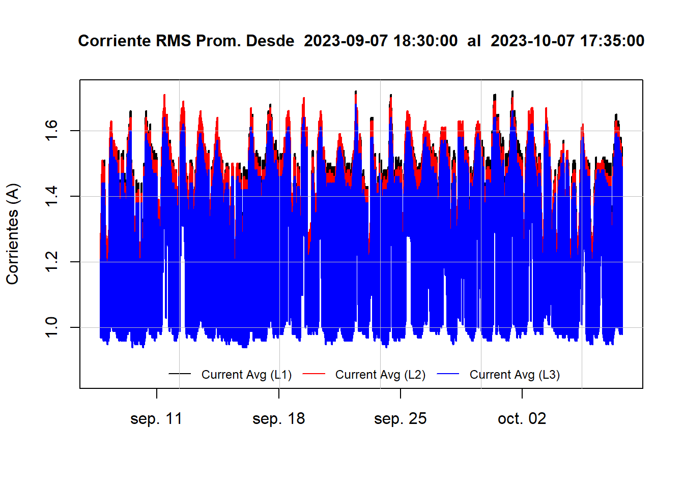 | Corriente L1 | Corriente L2 | Corriente L3 | |